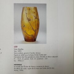エコール・ド・ナンシーの美術館に同デザインの作品が所存されており、カタログによると1893年頃に製造された作品であると記載がございます。同デザインで複数の器型作品が展開されていたとみられ、弊社では過去にも3作品取り扱った実績がございます。