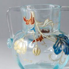 - 月光ガラス、型吹き成型、アプリカッション(取っ手部分)、エナメル彩、金彩