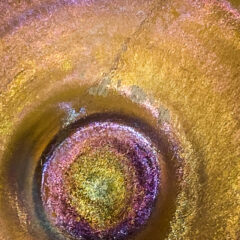 異なる色のガラスが溶け合い混ざり合うファブリルガラス作品は、魅惑的で複雑な表情を私たちに見せてくれます。「ファブリルガラスは、華やかで深みのある色彩、まるでアメリカの蝶の羽、鳩や孔雀の首、カブトムシの羽のような虹色を持っている。」-ルイス・C・ティファニー