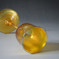 異なる色のガラスが溶け合い混ざり合うファブリルガラス作品は、魅惑的で複雑な表情を私たちに見せてくれます。「ファブリルガラスは、華やかで深みのある色彩、まるでアメリカの蝶の羽、鳩や孔雀の首、カブトムシの羽のような虹色を持っている。」-ルイス・C・ティファニー