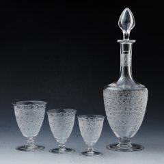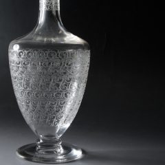 バカラの名デザイン:シャトーブリアン-Chateaubriant-のカラフが入荷しました。今回の入荷はサイン無の個体で1936年以前です。エッチングの彫りは非常に深く美しいです。彫りの部分に触れると指にエッチングの彫りの深さが感じ取れます。使用感もほぼなく、ヴィンテージのカラフにありがちな底の部分の白濁も見られません。
