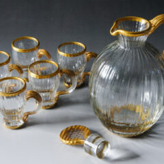 DUCAL と題したテーブルウェアのシリーズで、フリルのように波打つガラスに刷毛目を活かした金彩が華やかに彩るドーム工房の定番スタイルです。