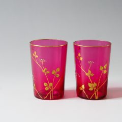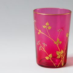 赤色ガラスに金彩装飾の入った小さなゴブレット。