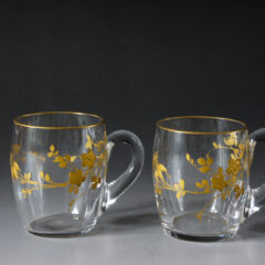 1880年代~1900年頃にかけてバカラの黄金期に制作されたお品です。ハンドルの付いた形が愛らしく、ジャポニズムの影響を感じさせる絵付け。