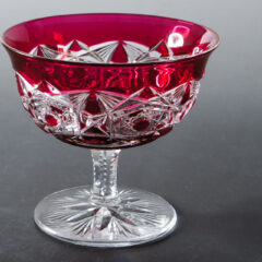 この鮮やかな赤はガラスに金を混ぜ込んで発色させることから金赤とも表現され、バカラの中でも特に高級なラインに使用された希少な色ガラスです。コレクションピースとしてキャビネットに飾っていただいても十分お楽しみいただけるグラス作品となっております。