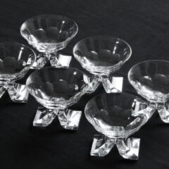 ''Georges Chevalier'' ジョルジュ・シュヴァリエによって1935年にデザインされたグラス。''SAINT-HUBERT''サンチュベールとはブリュッセルの中心部にあるアーケード街が名前の由来となっているようです。大西洋横断船での優雅な船旅やヨット遊びが流行した時代に、船の上でも安定性のあるグラスとして考案されたものです。クリスタルガラス本来の透明感を活かす大胆なカットは、ジョルジュ・シュバリエならではのデザインです。クープ型なので、グラスとしても器としても多用途にお使いいただけます。