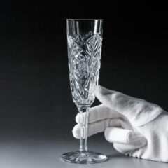 珍しいフルート型のラニーが入荷しました。ワイングラスやロックグラスは何度か取り扱いの実績がありますが、当社では恐らくフルート型は初の入荷ではないでしょうか。フルートグラスながら重厚感のある佇まいはカットデザイン特有です。