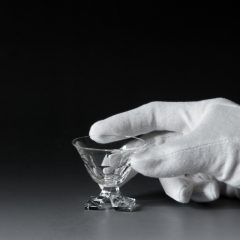 クリスタルガラス本来の透明感を活かす大胆なカットは、ジョルジュ・シュバリエならではのデザインです。大変珍しいリキュールサイズ。