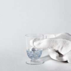 - クリアガラス、ブルーパチネ、型吹き(ボール)プレス(脚部)