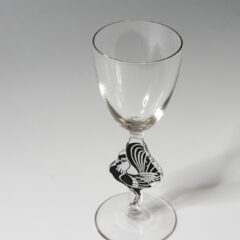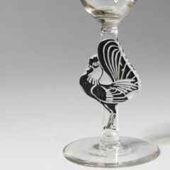ラリックが1925年にデザインを手がけたウィリアム ''WILLIAM'' のグラスが入荷しました。メダルのような形状の大ぶりな雄鶏がプレス成型でデザインされたお品。エナメル彩色のパターンは複数あるのですが、黒色系のエナメル彩。このグラスは1種のみのサイズ展開です。この系統のデザインはエドワード、ウィリアム、クリスティーナと3種展開されています。いずれもカクテルグラスの形状。アンティーク市場ではあまり流通しているグラスではなく、珍しいお品です。