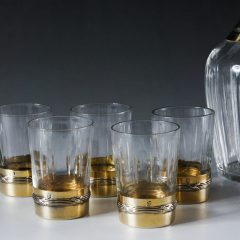 表示価格は1セット(ボトル1本とグラス5客)での販売価格です。シルバーは金彩でコーティングされています。