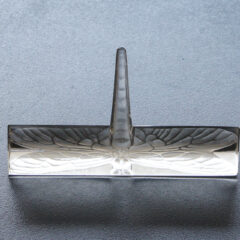 モチーフである「トンボ」が陰刻でデザインされており、セピア色のパチネによる彩色は細密なデザインの輪郭を浮かび上がらせ、作品の魅力をよりいっそう高めている。