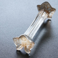 クリアガラスに艶消しを施し、パチネ彩色を入れるというラリックの初期作品によく見られる手法で蔦の葉が表現されています。