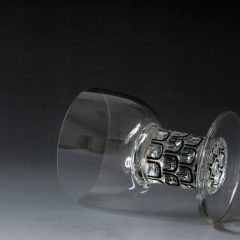 幾何学的なモチーフがスマートな印象の''SAINT-NABOR''のグラスが入荷しました。ラリックが1926年にデザインを手がけたシリーズで、カタログレゾネによるとh8.8cmのグラスはマデラ酒用のグラス。容量は約60ml程度で、冷酒杯に適したサイズです。ラリックがデザインを手がけたグラスシリーズには珍しく、黒エナメル彩色が施されています。