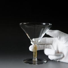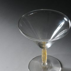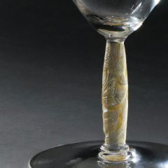 葉っぱのレリーフがあしらわれたデザインのグラス。