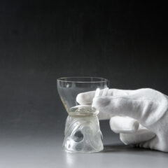 葡萄の実と蔓がモチーフになっており、全体をフロスト加工して実の部分のみ磨きを入れることで、美しい光沢を生んでいます。容量:約 60 ㎖程度で、冷酒杯に最適なサイズ。