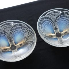 ラリックが好んで用いたオパルセントガラスは、自然光では青白く、透過光ではオレンジに見える、オパールのように光によって色を変える不思議なガラスです。