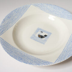 中央のアヒルは部分的に銀彩で彩られています。深さがありますのでスープやパスタ、ソースの多い前菜やデザートなど、すてきにお使いいただけます。