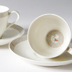 写真はカップ2客しか映っていませんが、6客でのセット販売です。スザンヌ・ラリックのテーブルウェアは製作期間が非常に短く生産数が少ないため、滅多にアンティーク市場に出回りません。
