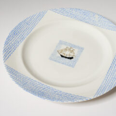 船の帆の部分は金彩で描かれています。デザート用のお皿。オードブルやケーキの取り分け皿としても使えます。