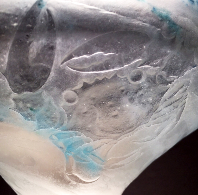 さらによーく見ると、大きなハサミを持った「カニ」が彫り込まれています。