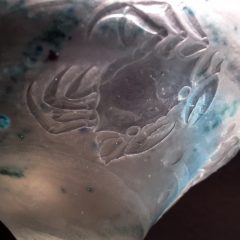 モチーフ、ガラスのスタイルともに非常に珍しい作品です。
