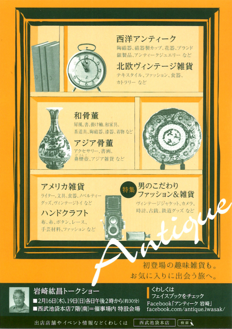 〇 16日(木)~22日(水) 暮らしの中の骨董マーケット @西武池袋本店 7階催事場