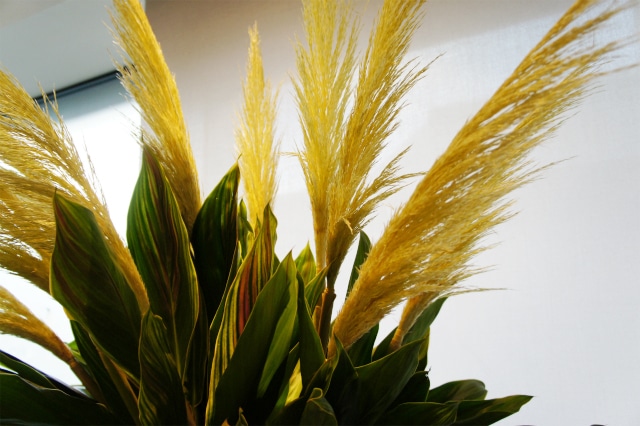 花材:セイヨウススキ、ドラセナ