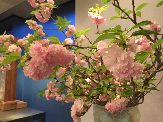 お店に牡丹桜を生けていただきました。