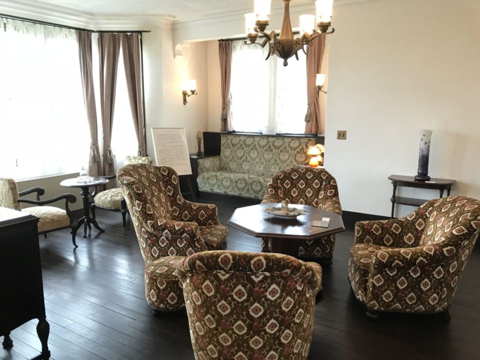 館内では当時の家具、ステンドグラス等の調度品が常設展示されています。