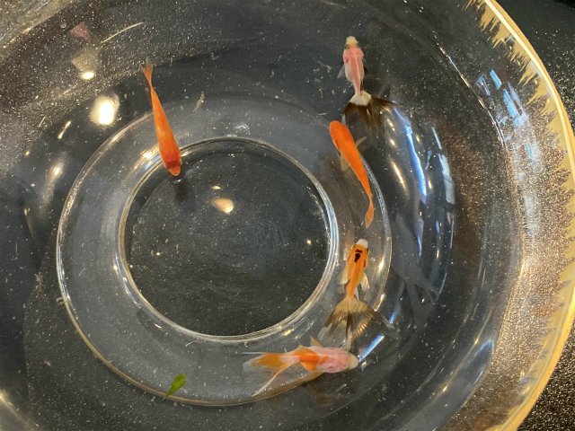 ドーム工房の大きな鉢に金魚を入れてみました。