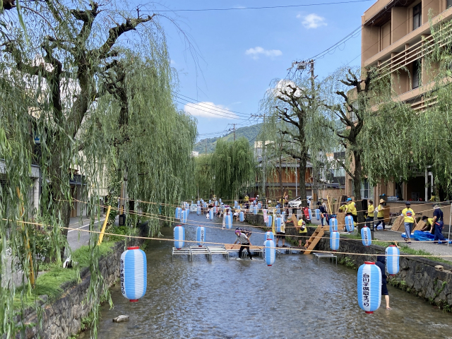 古川町商店街の裏、知恩院さんの門前から続く白川は、柳の木が立ち並んでいて、川端を歩くのがとても気持ちの良いスポットです。