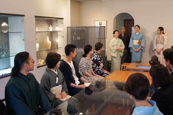 また今回は、野津手先生の若手作家を支援したいという思いから、金工作家さんや唐紙師の方、干菓子職人の方、料理人の方をお招きしての開催となりました。