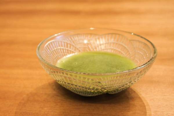 クリスタルガラスに抹茶の緑が映えます。